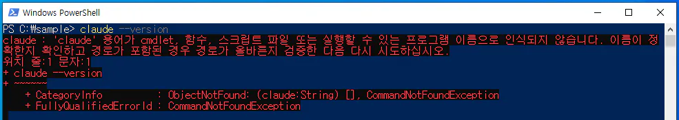 claude --version을 입력했는데 "인식되지 않습니다" 에러가 뜬다면, 다음 Step 3에서 PATH를 등록해주세요.